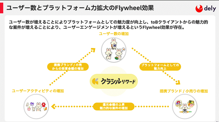 株式会社DelyのIR資料は、レイアウトやフォントサイズがバランス良く配置されており、読みやすさが非常に高くなっています。色使いも統一感を意識しつつ、視認性を確保しており、重要なメッセージを強調しつつも、全体の統一感を損なわない設計になっています。
